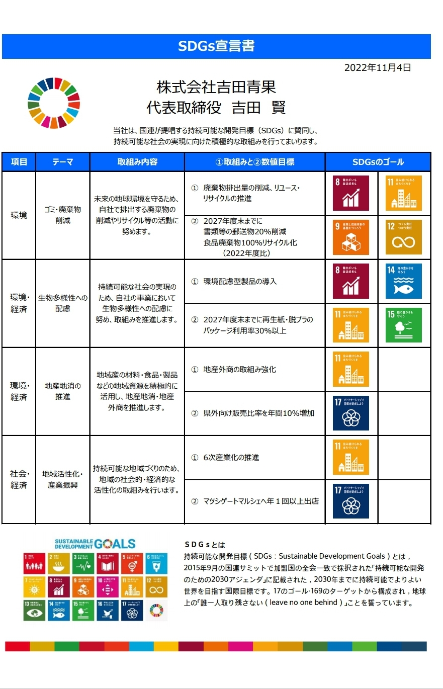 弊社は、農業生産者と消費者を繋ぐ架け橋として、消費者に新鮮な農産物を届けることを考え、農業者の所得向上に少しでもお手伝い出来たらと思い、日々努力しております。